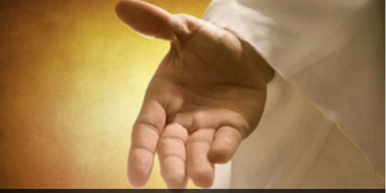 mostrando, con los brazos abiertos,